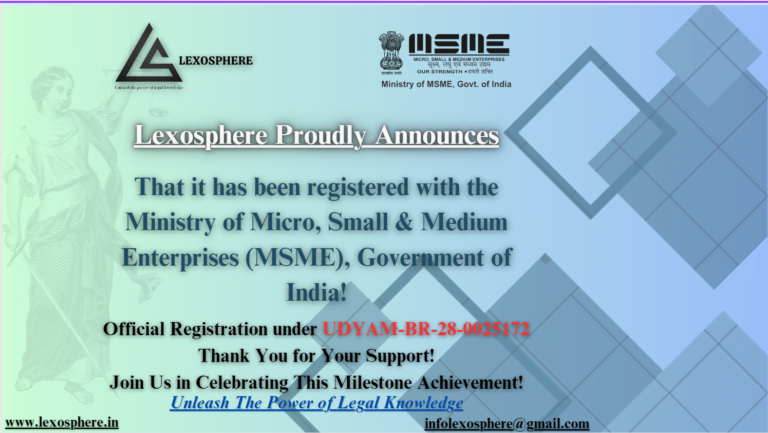 Lexosphere is more than just a legal platform; it’s a student-run initiative officially registered with the Ministry of Micro, Small & Medium Enterprises (MSME), Government of India. Since our inception on November 12, 2023, we’ve been committed to offering law students, academicians, and professionals unique opportunities to grow and engage in the legal field. We aim to bridge the gap between theory and practice by offering hands-on experience through our events, courses, and publishing platform.