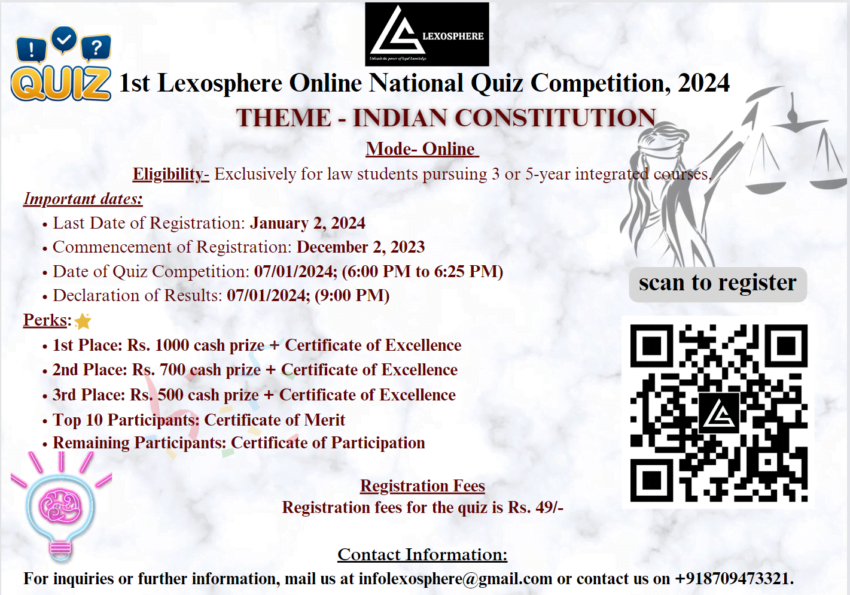 Join Us in Celebrating Legal Knowledge and Excellence! Lexosphere’s 1st Online National Quiz Competition, 2024 On Indian Constitution
