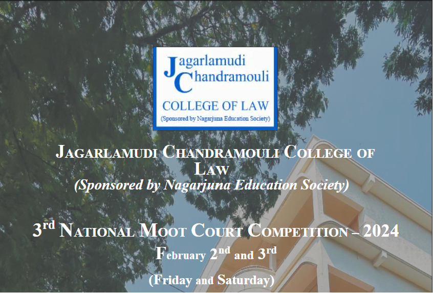 Moot Court is going to be developed into a key extracurricular activity in Jagarlamudi Chandramouli College of Law, as the College feels that mooting helps the law students the best. The College deems it as a right path to reach out to the future needs of legal aspirants and to recognize their talent and help them improve their skills of drafting and mooting. Therefore, here stands the J.C. College of Law conducting, it’s Third National Moot Court Competition.