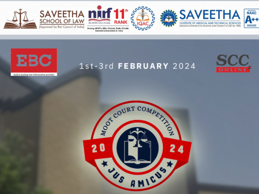 5th JUS AMICUS SAVEETHA SCHOOL OF LAW NATIONAL MOOT COURT COMPETITION, 2024: Register By 30th Dec.
