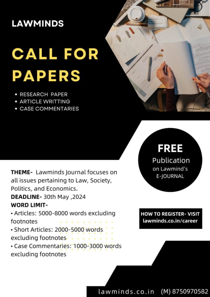 Lawminds’s Quarterly Journal is calling for papers on Socio-Legal and Contemporary Research for its Volume 1 Issue 1.