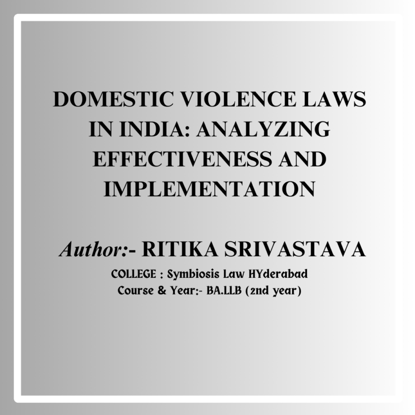 With an emphasis on the Protection of Women from Domestic Violence Act (PWDVA), which was passed in 2005, the paper examines the legislative system in India that addresses domestic abuse. In addition to identifying loopholes and difficulties in the application and enforcement of these laws, it evaluates how well legal mechanisms protect, uphold the law, and assist victims of domestic abuse. The effects of domestic violence on women’s socioeconomic position, physical and mental health, and capacity to access resources and support services are also examined in this study project. It also draws attention to the cycle of violence that spans generations and its effects on subsequent generations. By employing a multidisciplinary methodology that integrates perspectives from gender studies, law, psychology, and sociology, this research aims to enhance our comprehension of domestic violence against women in India.