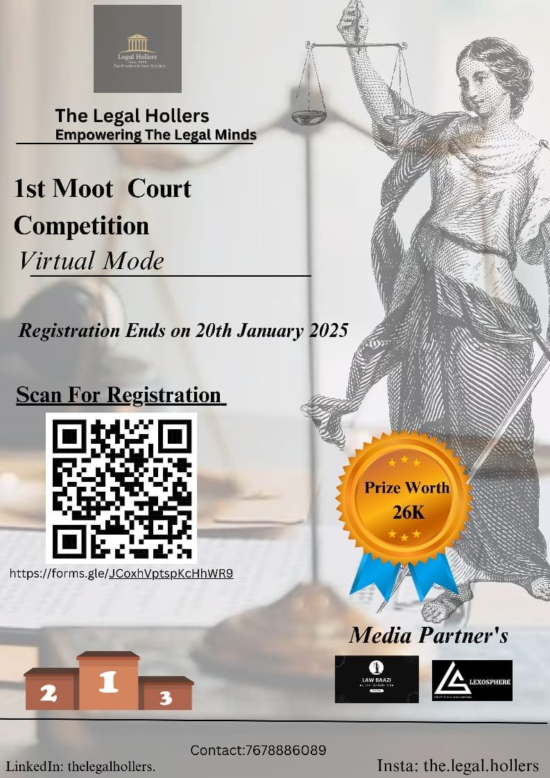 1ST THE LEGAL HOLLERS VIRTUAL MOOT COURT COMPETITION, 2025 : Register By 20th January 2025